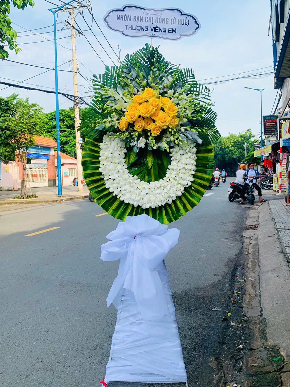 HCB 158 Vòng Hoa Viếng 1 Tầng Hồng Vàng