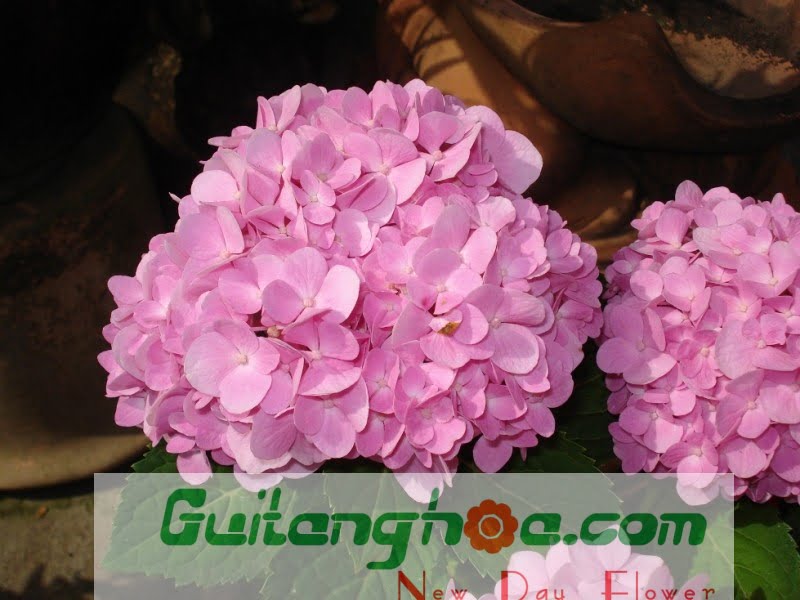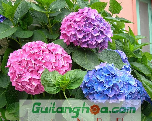 Hoa cẩm tú cầu màu hồng và tím