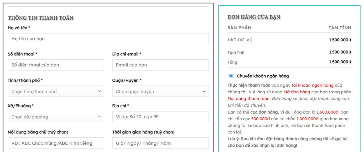 Nhập thông tin giao hàng chính xác để đảm bảo rằng đơn hàng sẽ được gửi đến địa chỉ đúng. Xin lưu ý rằng chúng tôi cam kết bảo mật thông tin cá nhân của bạn và sử dụng nó chỉ cho mục đích đặt hàng.